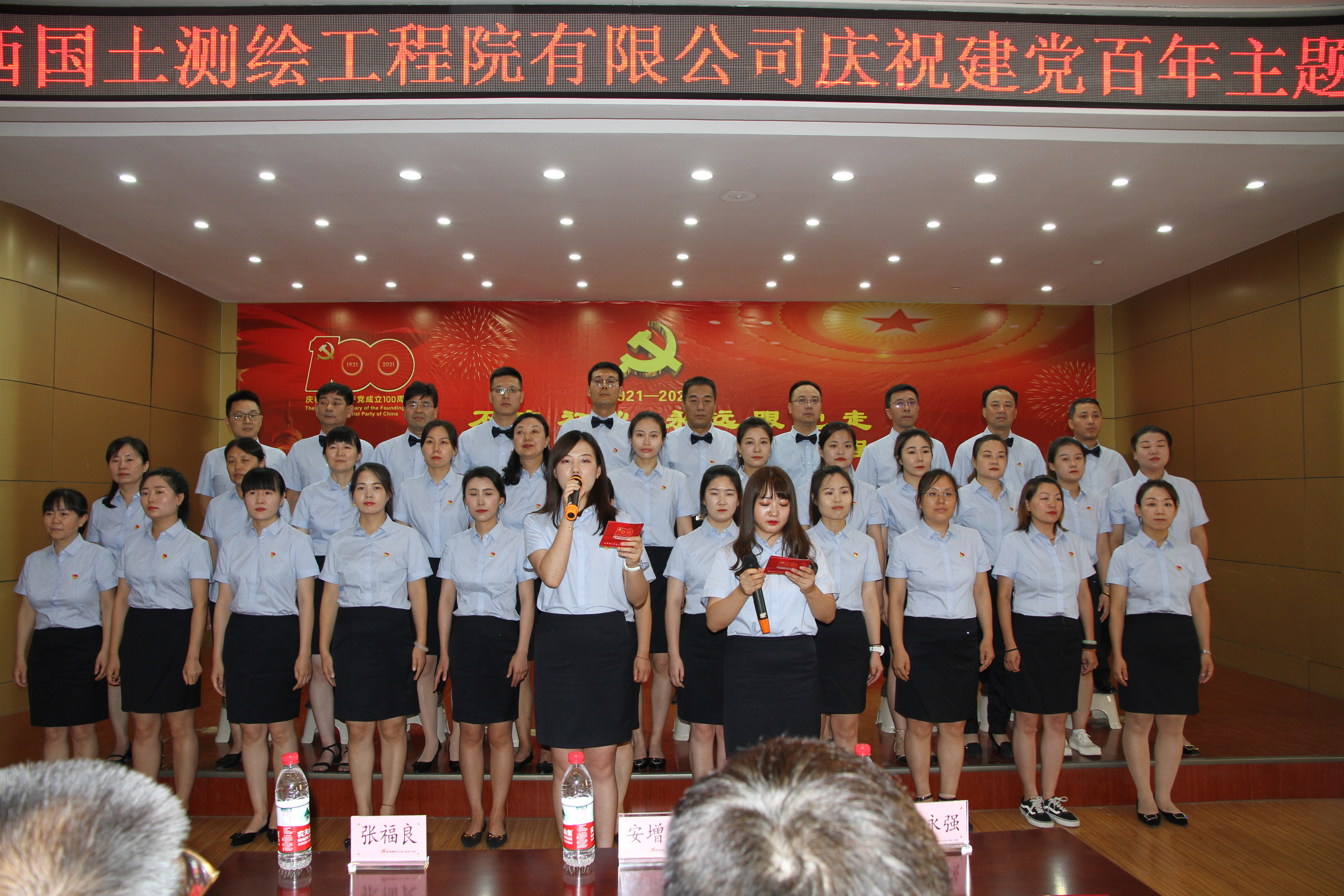 大家精神飽滿、神采飛揚,深情唱響了《我和我的祖國》《愛我中華》《歌唱祖國》等一首首耳熟能詳的紅色歌曲,詩朗誦《紅船》、舞蹈《我們的祖國歌甜花香》等作品重現了那段崢嶸歲月,唱響了時代主旋律,謳歌了黨的豐功偉績。合唱展演在《沒有共產黨就沒有新中國》的歌聲中圓滿落幕,公司院部干部員工、受表彰的優(yōu)秀共產黨員、優(yōu)秀黨務工作者、演出人員共計100余人參加了此次主題活動。