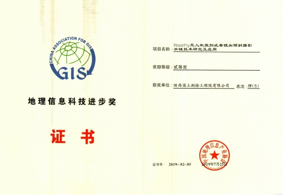 地理信息科技進(jìn)步獎(jiǎng)二等獎(jiǎng)證書(shū)