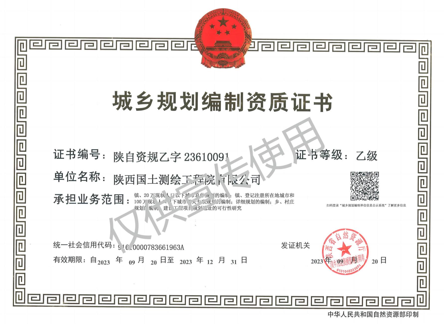 近日,經(jīng)省自然資源廳審核批準(zhǔn),陜西國土測繪工程院順利獲得城鄉(xiāng)規(guī)劃編制乙級資質(zhì),標(biāo)志著公司邁向開展國土空間規(guī)劃編制工作的新征程。